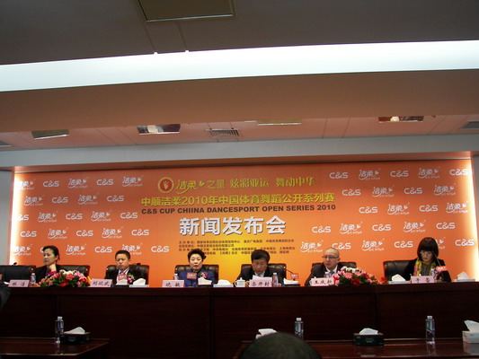 2010年中国体育舞蹈公开系列赛4月在沪开赛,4月6日,国家体育总局社会体育指导中心、365bet网址(CDSF)联合在北京召开新闻发布会。(于红立摄)