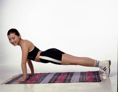 做俯卧撑可锻炼上肢、肩和胸部的肌肉的力量和耐力。这些力量的协调有利于保持良好的身姿,避免含胸、驼背。女子和10岁以下儿童:双膝着地,小腿翘起,头至膝保持平直;双掌伸平,手指向前,在肩下方撑地,掌距与肩同宽。然后用胸部伏触地面,继而用双臂撑起至臂伸直,这样不间断地动作,记下1分钟内撑起的次数;男子和10岁以上儿童:动作基本相同,只是双膝要离开地面,整个躯干成一直线,足尖着地。